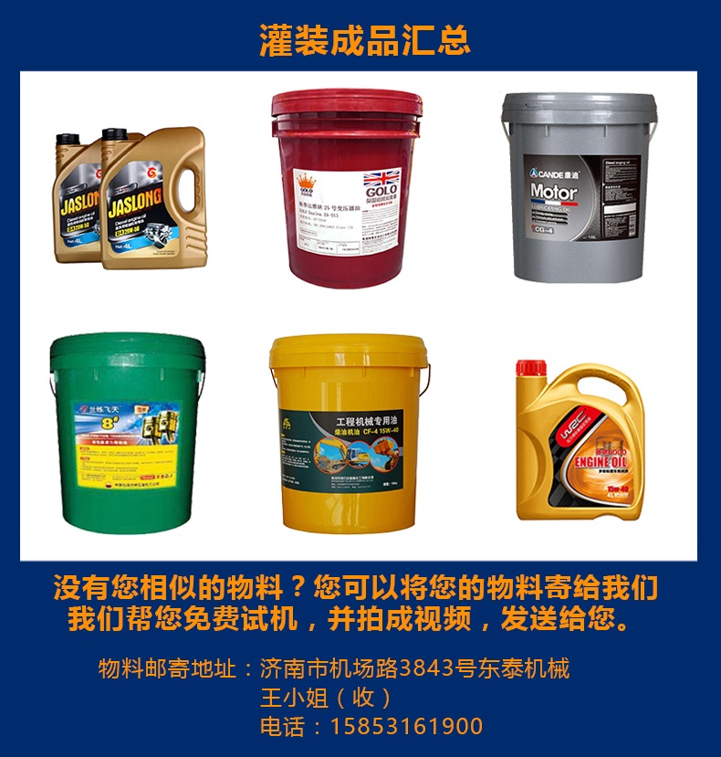 本機是根據(jù)潤滑油的特性而設(shè)計的一款全自動稱重式潤滑油灌裝機,該機設(shè)計緊湊合理,外形簡潔美觀大氣,灌裝量調(diào)節(jié)方便,精度高,借鑒灌裝流程控制技術(shù),進口彩色觸摸屏人機界面,灌裝進程實現(xiàn)一鍵式操作,性能穩(wěn)定。采用兩個316儲油箱解決灌裝量大的問題,一個進油口控制兩個油箱的液位,一個儲油罐分別控制5個灌裝頭,速度更快,精度更高。