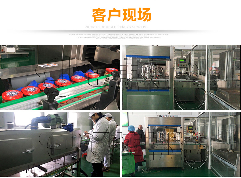 該生產(chǎn)線適合中小口徑三旋、四旋玻璃瓶調(diào)味醬的分裝,適合醬料、含顆粒黏稠物料的灌裝,物料接觸部分均采用316不銹鋼,整機(jī)304不銹鋼,符合食品衛(wèi)生標(biāo)準(zhǔn)。該機(jī)設(shè)計(jì)合理,機(jī)型小巧,立式結(jié)構(gòu),節(jié)省場地,操作方便。啟動(dòng)部分均采用FESTO和臺(tái)灣AirTack的氣動(dòng)元件。灌裝閥有氣動(dòng)閥控制,灌裝精度更高,灌裝量和灌裝速度均可任意調(diào)整,灌裝悶頭采用防拉絲及升降灌裝裝置。
