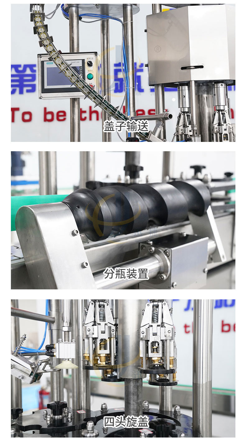 全自動四頭金屬鎖蓋機(jī)供鋁蓋酒瓶瓶封蓋用,整體采用304不銹鋼制作,運(yùn)行穩(wěn)定可靠。適用于50-100ml各類圓瓶、方瓶等瓶型旋蓋。