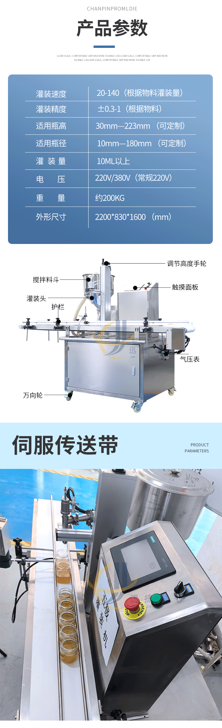 五極灌裝機:極快-單頭2200瓶/時 極簡-操作簡單 極廣-啥啥都能灌 極穩(wěn)-24小時不停機 極準(zhǔn)-200g誤差小于1g。
