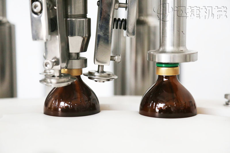 灌裝時灌裝頭潛入瓶底,緩慢上升,可有效防氣泡。灌裝針頭設(shè)有防滴漏裝置,確保灌裝精度,合格率大于99%。用柱塞式計量泵執(zhí)行灌裝,精度高;泵的結(jié)構(gòu)采用快接式拆卸機(jī)構(gòu),便于清洗、消毒。